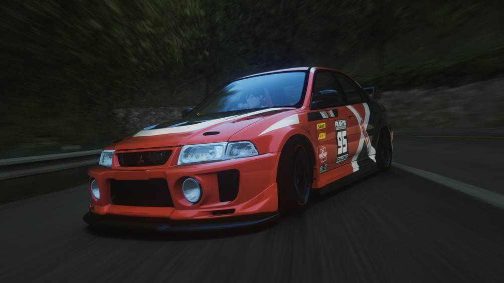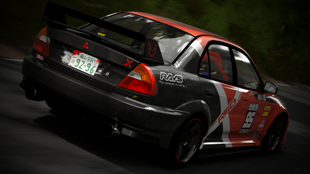 "The Mitsubishi Lancer Evolution V RedX Spec is the concept of a fast car for slow to mid speed corners, made like a rally car, is Fast, lightweight and has not too much power to keep the car stable and consistent. It has Forged Internals and a Stock block, with Haltec ECU, A bigger turbo and TEIN Super Racing Coilovers, Stage X weight Reduction, Dual Exhausts that are custom made with antilag (Misfiring Shystem). This car is good for the track, touge and the highways. RedX spec tries to amplify the strengths of the evo while removing un-necessary weight off the car and tries to eliminate understeer. "